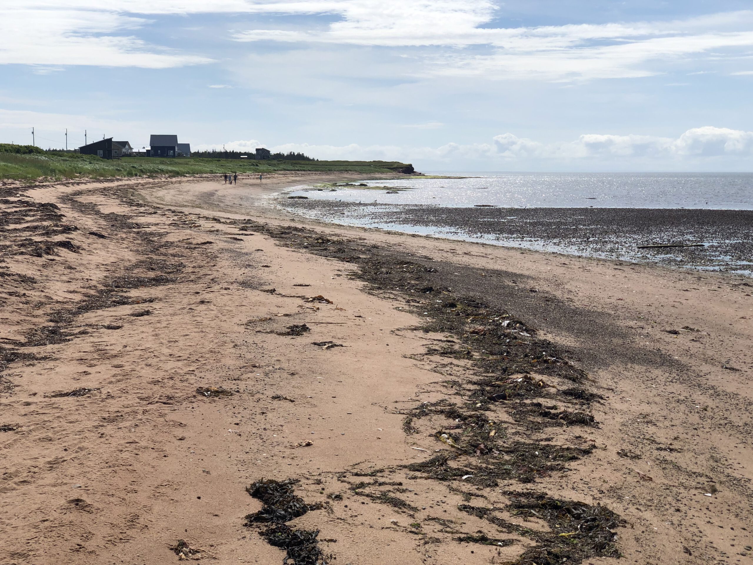 Unser Ziel ist Basin Head Provincial Park. Ein wirklich schöner Strand. Ich habe mich sofort verliebt. Der Beste, den ich hier bisher gesehen habe. Toller Sand, gute Wellen, nettes Drumherum. Ich muss mit Mia erstmal um die Wette bis zum Hals ins Wasser rennen. Es ist sehr kalt, aber auch sehr klar. Das macht es ganz angenehm. Man sieht vereinzelt Quallen. Sonst nur ein paar Algen. Kein Fisch oder Krabben oder gar Lobster in der Nähe, so scheint es. Vielleicht kommen sie auch später mit mehr Flut und weniger Menschen. Das werden wir wohl nie erfahren.